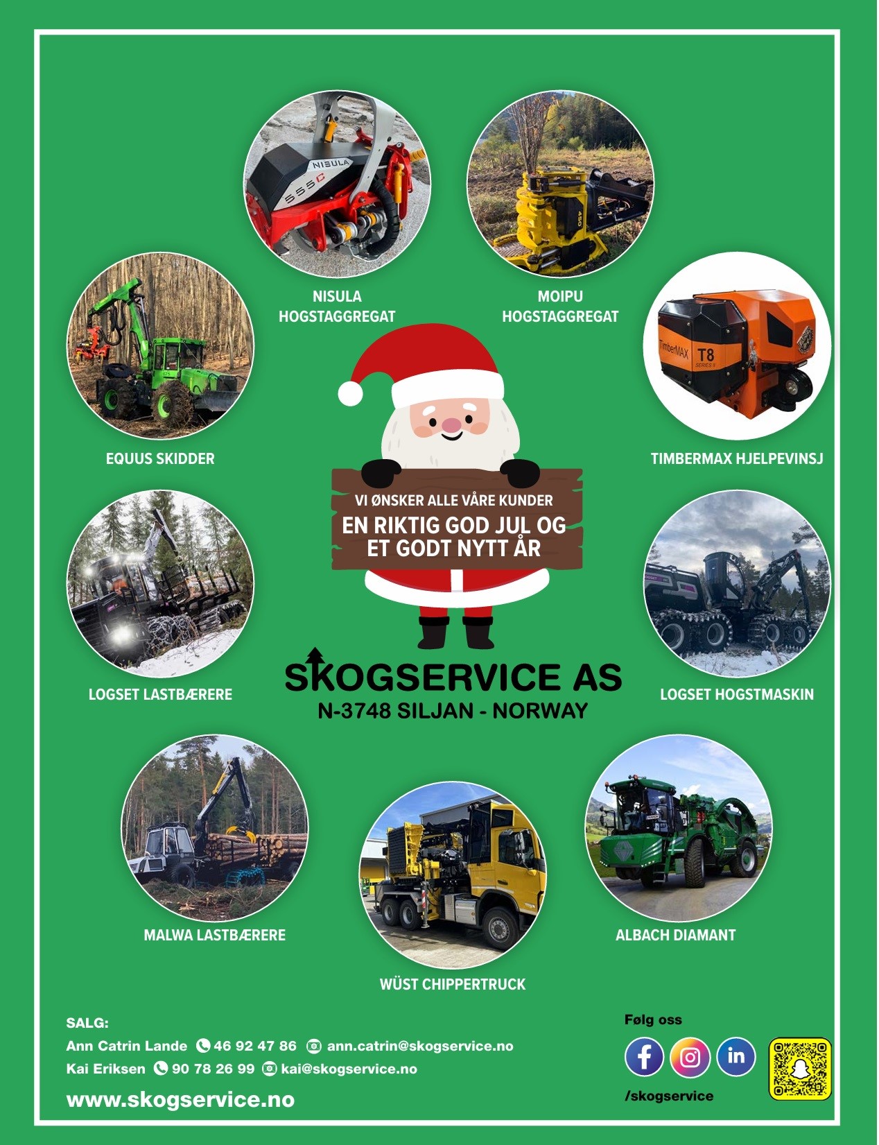 Vi ønsker alle en riktig god og fredfull jul fra oss i Skogservice AS